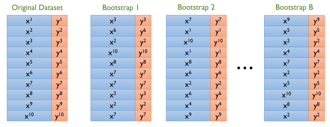 - 각 데이터셋 샘플을 bootstrap이라 한다.