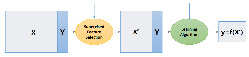 특정한 Supervised Feature Selection 기법을 사용해 차원을 축소한뒤 learning algorithm을 사용해 피드백을 받는다. 따라서 차원 축소 결과는 어떤 learning algorithm을 사용하는지에 따라 달라진다. 예를 들어, PCA 기법을 사용해 차원을 축소할 수도 있고 learning algorithm이 선형 회귀인지 혹은 logistic 회귀인지에 따라 차원 축소 결과가 달라진다는 뜻이다.