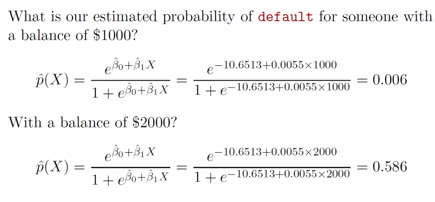 balance 변수만 가지고 로지스틱 회귀를 수행하였을 때
