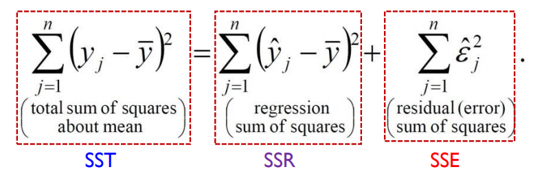 SSE는 Regression에 의해 설명이 불가능한 것이고 SSR은 설명이 가능한 것이다. 즉, $R^2$가 커질 수록 좋은 것이다.